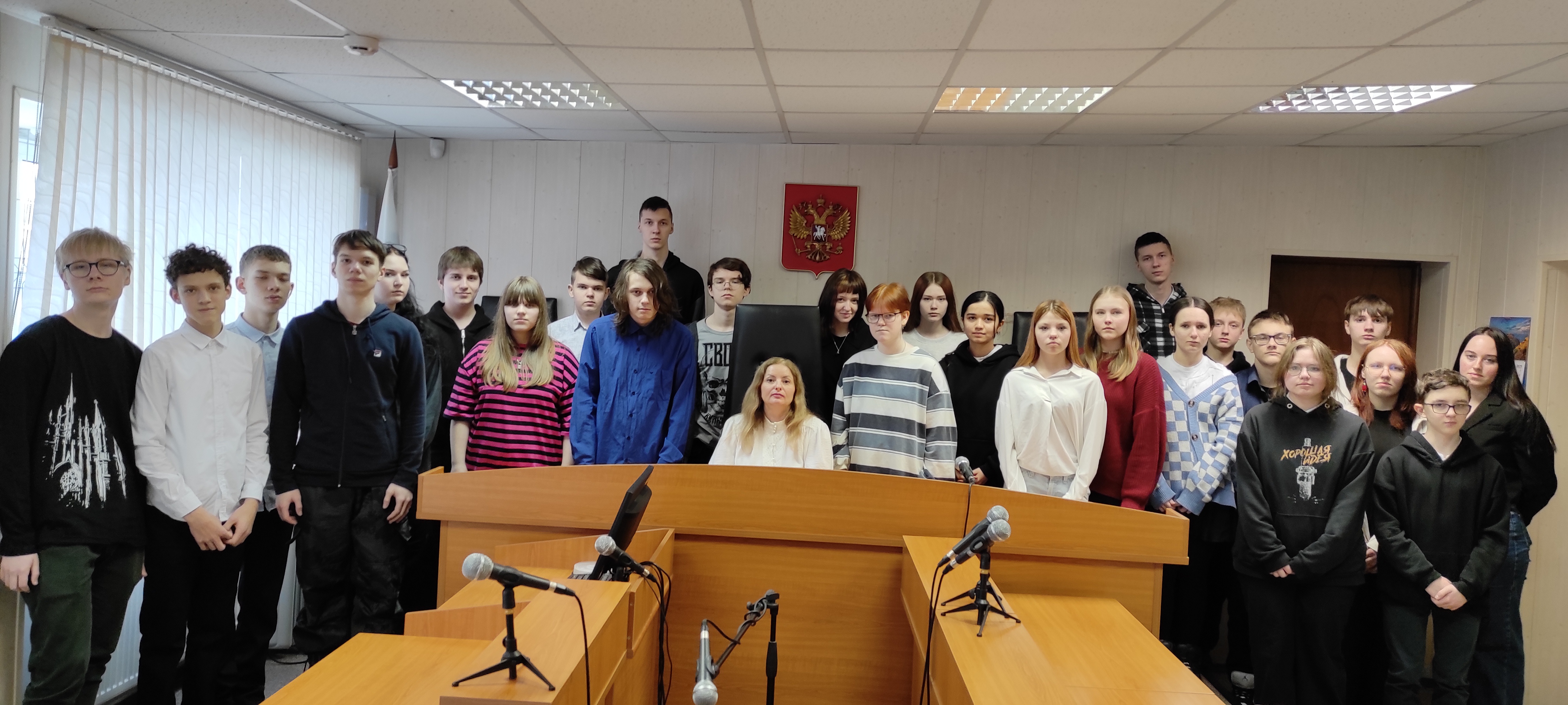 27 февраля 2026 года в рамках регионального проекта по правовому просвещению молодежи «Доступно о праве» в Ленинском районном суде г. Мурманска прошла экскурсия для учащихся девятых классов МБОУ г. Мурманска «СОШ №3». Перед началом мероприятия судебные приставы по ОУПДС ознакомили учащихся с правилами поведения в суде и перечнем запрещенных к проносу в здание суда предметов и веществ. Затем консультант Березина И.Н. провела для школьников экскурсию по суду, в ходе которой они смогли ознакомиться с работой приемной суда, канцелярии, экспедиции, архива, а также побывать в залах судебного заседания и в кабинете судьи. Ребята узнали о техническом оснащении суда, в частности об использовании в работе суда системы аудиозаписи «Фемида» и системы видеоконференцсвязи. Также Ирина Николаевна рассказала гостям о судебной системе Российской Федерации, об истории и работе Ленинского районного суда города Мурманска, о квалификационных требованиях, предъявляемых к сотрудникам аппарата суда. В продолжение мероприятия администратор суда Ширнина С.Н. провела для ребят экскурсию в конвойном помещении суда. Затем перед школьниками выступила судья Минакова Е.А., которая довела до ребят информацию о квалификационных требованиях, предъявляемых к судьям при назначении их на должность, поделилась историей своего трудового пути. Также Елена Анатольевна рассказала учащимся о наиболее резонансных делах, рассмотренных в суде. В ходе мероприятия ребята получили отличную возможность ознакомиться с работой суда изнутри, представление о профессии юриста, с которой, возможно, свяжут свою жизнь в будущем. Полученная в ходе экскурсии информация, несомненно, позволит учащимся сформировать собственное представление о современных правовых и моральных ценностях общества, определить их отношение к праву как общественной ценности. Пресс-служба Ленинского районного суда г. Мурманска |