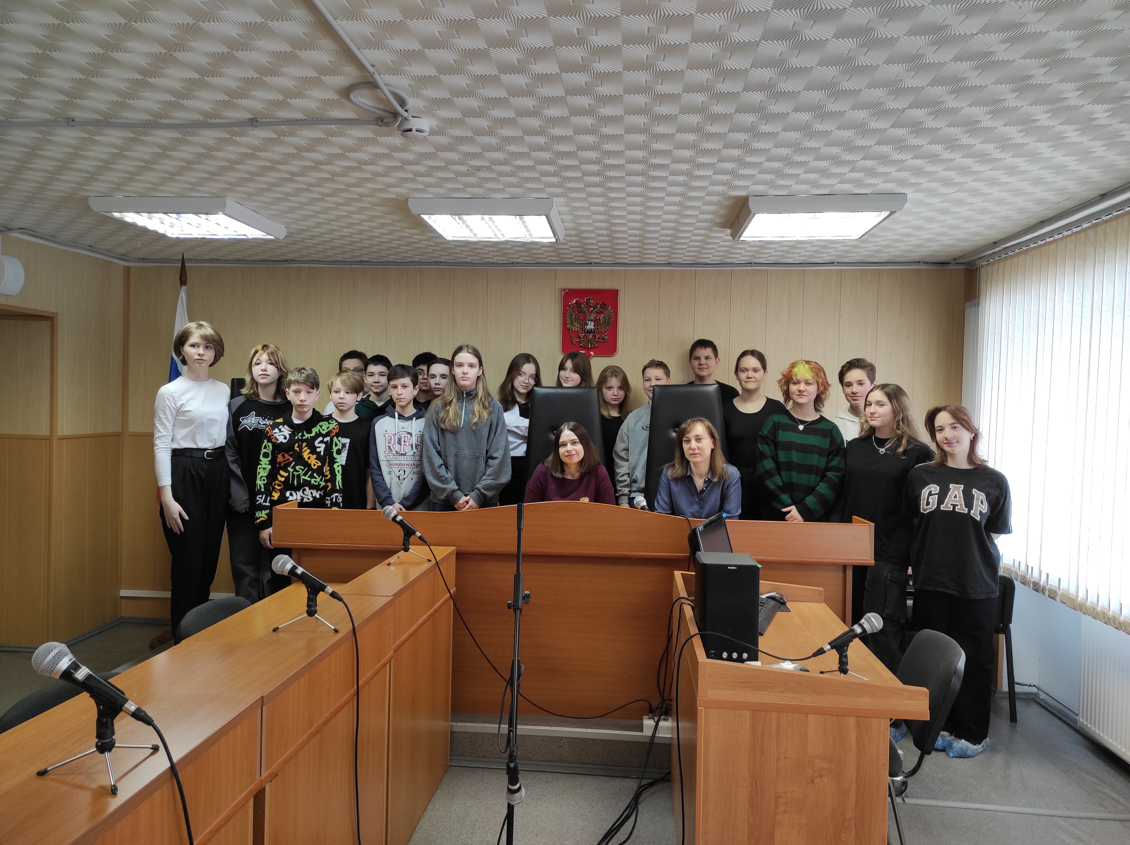28 марта 2025 года в Ленинском районном суде города Мурманска в рамках регионального проекта по правовому просвещению молодежи «Доступно о праве» прошла экскурсия для учащихся седьмых классов МБОУ «Мурманский академический лицей». Перед началом экскурсии консультант суда Березина И.Н. рассказала ребятам о правилах поведения в суде. Судебные приставы по ОУПДС ознакомили учащихся с перечнем запрещенных к проносу в здание суда предметов и веществ. В ходе экскурсии, проведенной начальником отдела делопроизводства Щербаковой Т.В. и консультантом Березиной И.Н., ребята побывали в залах судебного заседания, кабинете судьи, ознакомились с работой приемной суда, экспедиции, архива, отдела делопроизводства. Сотрудники суда рассказали об использовании в судах технических средств: системы аудиозаписи «Фемида» и системы видеоконференцсвязи. Судья Кузнецова Т.С. рассказала школьником о судебной системе, квалификационных требованиях, предъявляемых к судьям при назначении их на должность. Судья Краевая В.В. разъяснила присутствующим, с какого возраста наступает уголовная ответственность, уделила внимание отдельным категориям преступлений. Судьи ответили на вопросы учеников и педагогов. Мероприятие проведено с целью оказания помощи школьникам в определении собственных представлений о современных правовых и моральных ценностях общества, развития интереса к вопросам правового образования, формирования у учащихся правосознания и правовой культуры, профориентации, а также профилактики совершения преступлений и правонарушений. Пресс-служба Ленинского районного суда г. Мурманска |